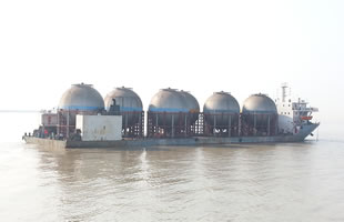 与上海交运联合承运宝钢搬迁项目-罗泾装湛江宝钢球罐直径12米,高度13米,件重:231吨